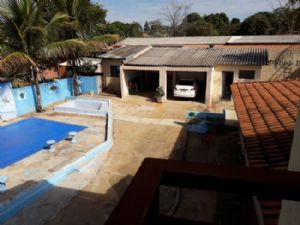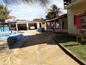 chacara c construcao de um sobrado, c 3 quartos c suite, sala, sala de jantar, edicula, copa, area de servico, 3 banheiros, piscina medindo 4x 8x1,50m2, c aquecedor - 42.000 litros, 2 lagos com criacao de peixes e marrecos.e canil - camara de seguranca garagem p 2 carros fundos banheiros fora dacasa