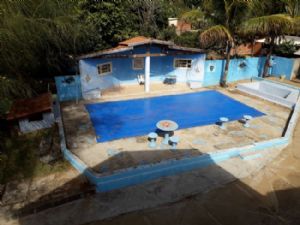 chacara c construcao de um sobrado, c 3 quartos c suite, sala, sala de jantar, edicula, copa, area de servico, 3 banheiros, piscina medindo 4x 8x1,50m2, c aquecedor - 42.000 litros, 2 lagos com criacao de peixes e marrecos.e canil - camara de seguranca garagem p 2 carros fundos banheiros fora dacasa